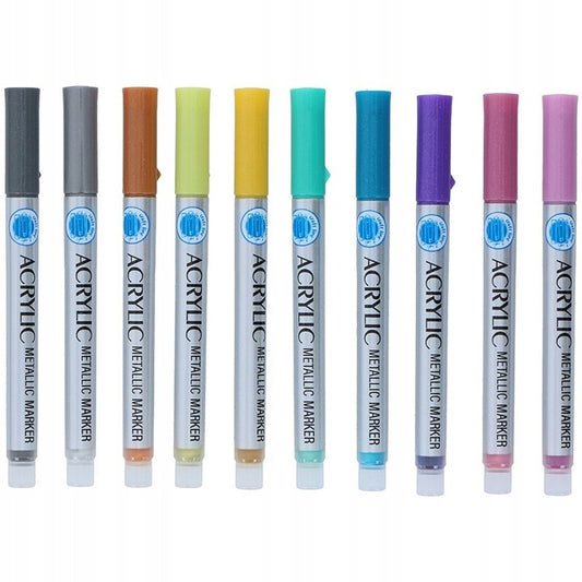 Markery akrylowe - zestaw 10 sztuk: pisaki, flamastery, mazaki metaliczne