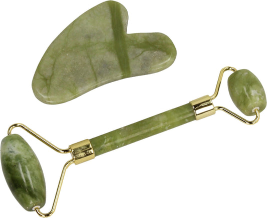 Masażer do twarzy kamień gua sha + wałek jadeitowy