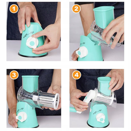 Maszynka do tarcia ziemniaków, sera, warzyw - szatkownica, tarka z 3 wkładami, idealna do Twojej kuchni.