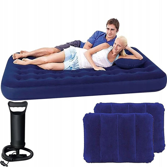 Materac dmuchany do spania turystyczny 191x137 + pompka + 2x poduszki 200kg