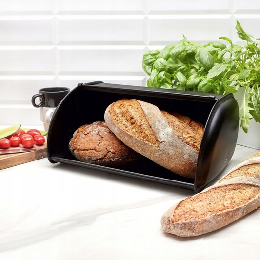 Mały chlebak czarny metalowy, pojemnik, solniczka i pieprzniczka