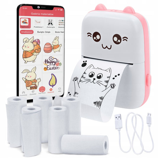 MINI DRUKARKA PRZENOŚNA TERMICZNA DLA DZIECI + ROLKI