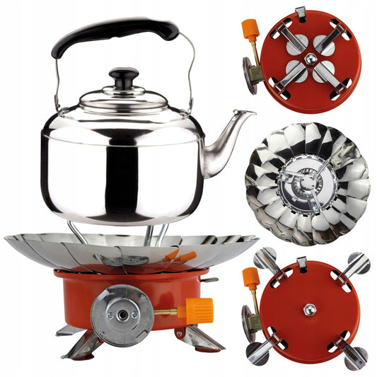 Mini Kuchenka Gazowa Turystyczna z Kartuszem i Osłonką - Wygodne Gotowanie w Dowolnym Miejscu