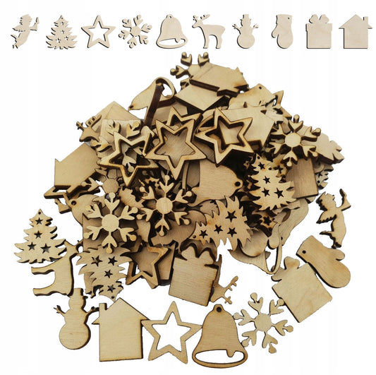 Mini drewniane dekoracje na Święta MIX 100szt 25mm