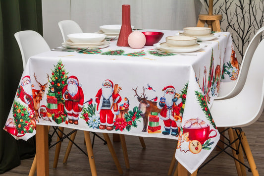 Obrus świąteczny czerwony biały 140x220 Boże Narodzenie bożonarodzeniowy