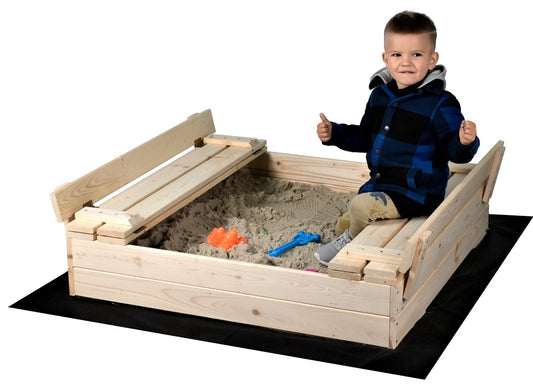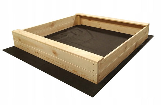 Piaskownica Zamknięta Drewniana Duża z Włókniną i Ławeczkami - 140x140cm