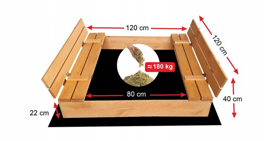 Piaskownica Drewniana z Ławkami - 120cm (Kolor: Pomarańczowy)