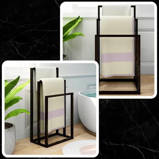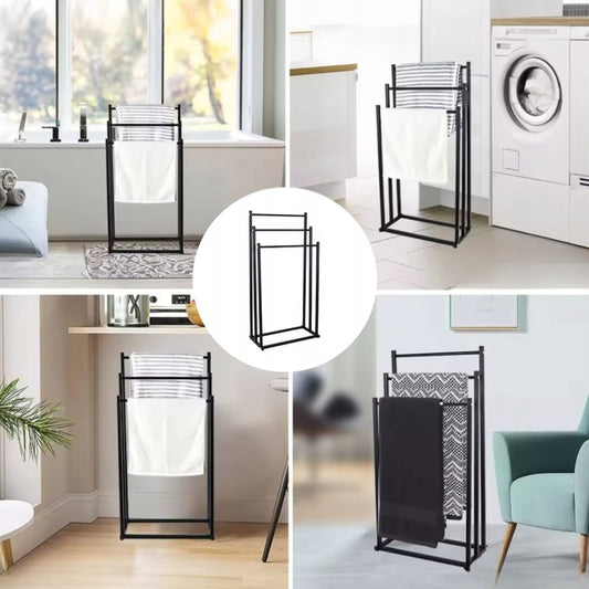 Stojak na ręczniki czarny – podłogowy, metalowy wieszak łazienkowy loft