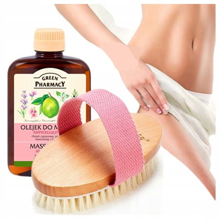 Szczotka na masażu na sucho na cellulit antycellulitowa peelingu + olejek.