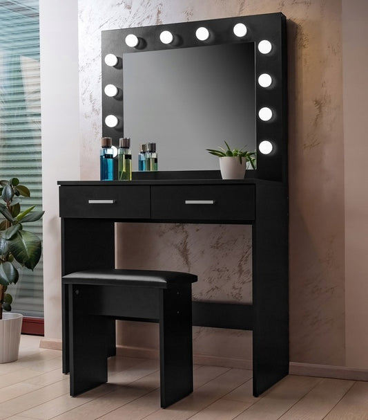 Toaletka z oświetleniem i stołkiem 80x140x40 cm czarna