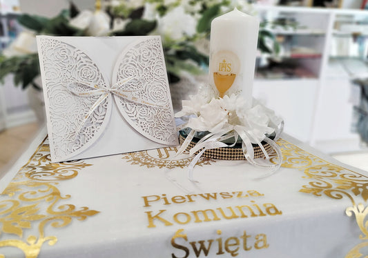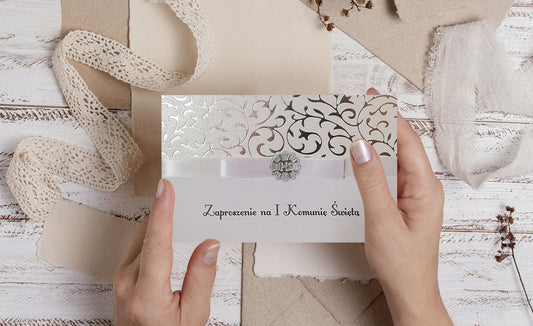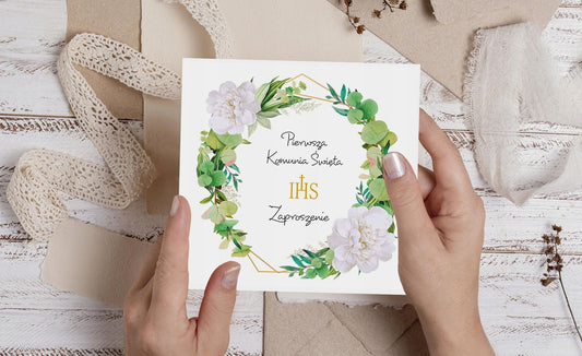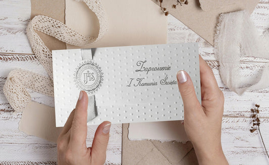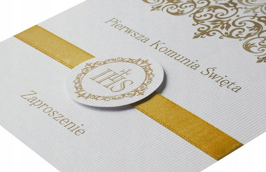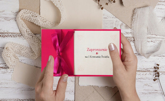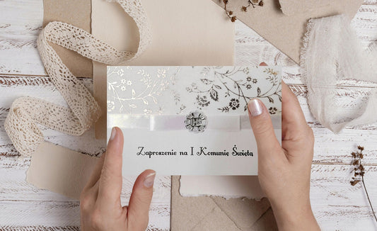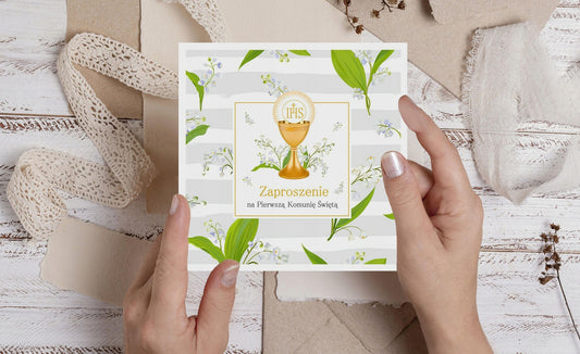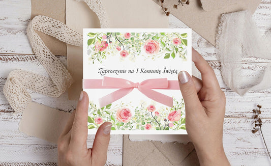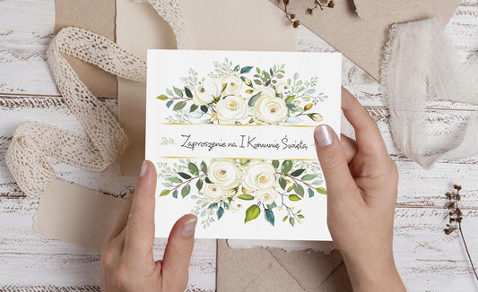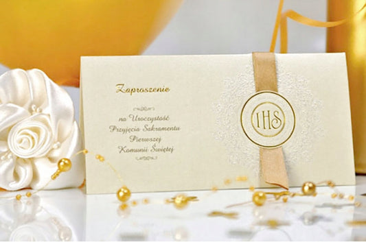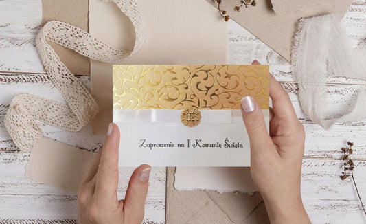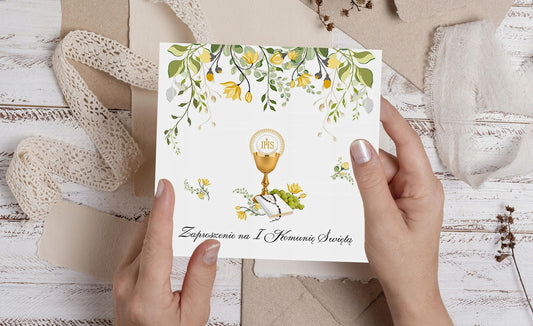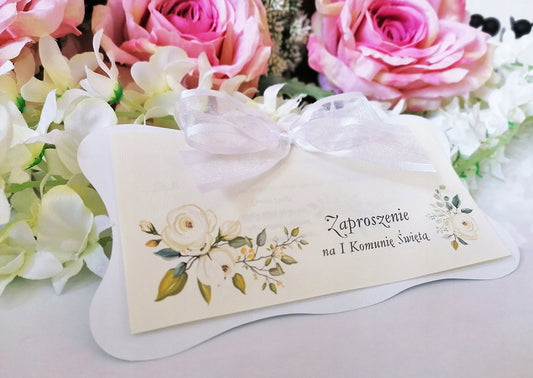 Zaproszenia Komunijne z Kopertą - Zestaw 5 Sztuk, Eleganckie i Wyjątkowe!