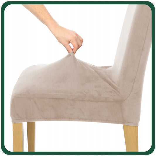 Zestaw 6 szt. pokrowców na krzesło, chłodny beż, welur, elastyczny
