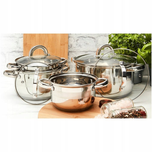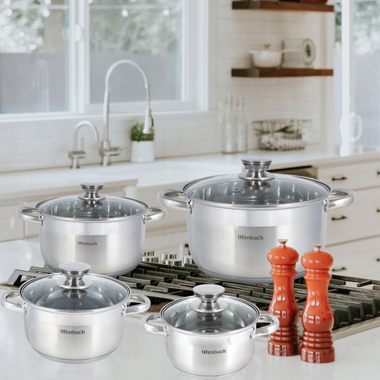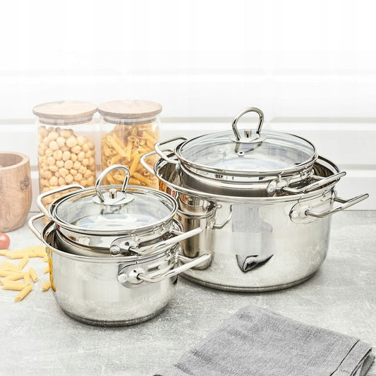 Zestaw Garnków do Indukcji - Komplet 4 Garnki + 4 Szklane Pokrywy