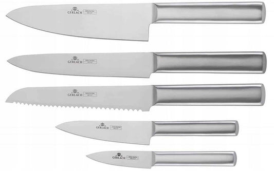 Zestaw komplet 5 noży kuchennych w bloku – całości stalowe, ostre