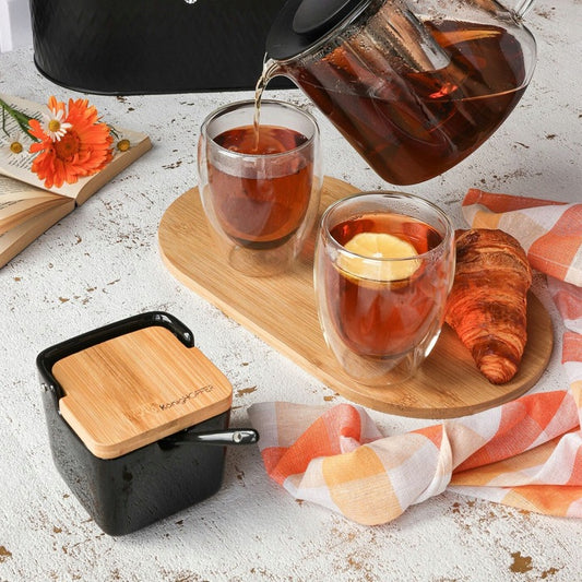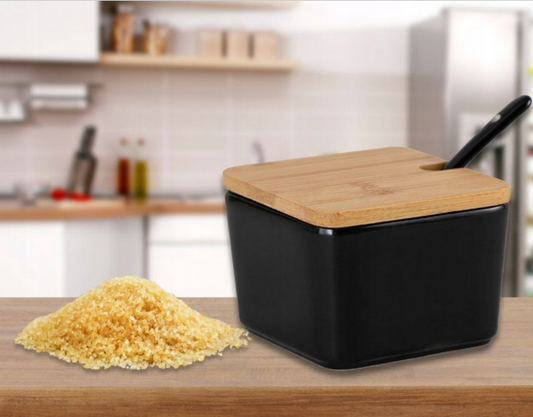 Cukiernica z łyżeczką porcelana i bambus czarna