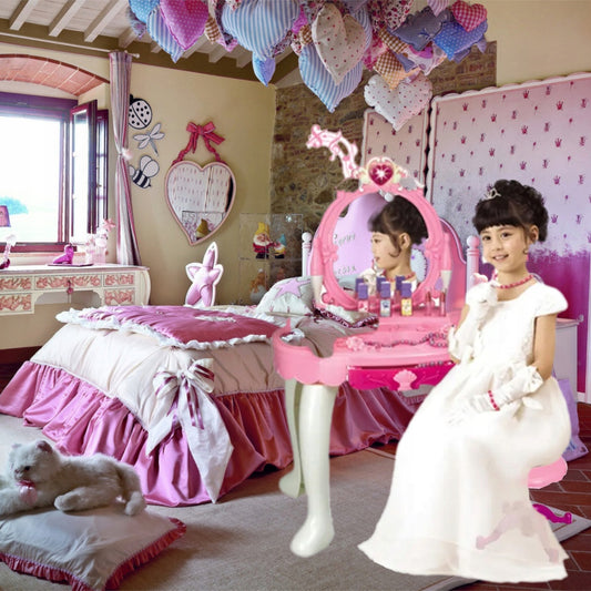 Duża toaletka stolik dla dziewczynki - różowa, akcesoria, zestaw XXL.