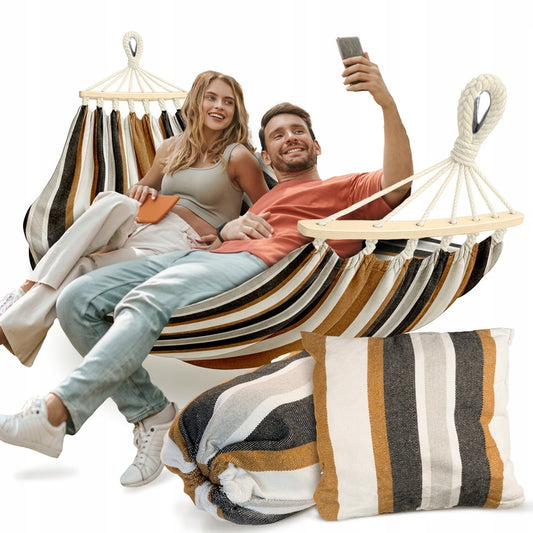 Duży hamak brazylijski ogrodowy XXL – 2-osobowy, wytrzymały + torba + poduszka