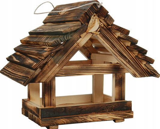 Duży karmnik dla ptaków drewniany XXL opalany.