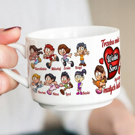 Filiżanka dla nauczycielki przedszkolanki z imionami dzieci - Wielkie Serce