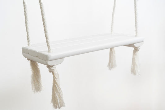 Huśtawka biała drewniana ogrodowa dla dzieci - deska