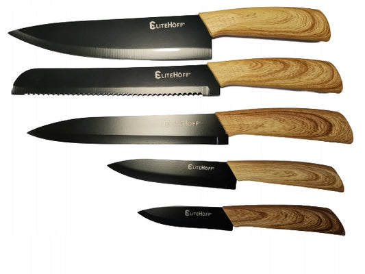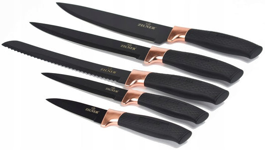 Komplet noży w bloku – noże kuchenne ze stojakiem, zestaw 6 el., czarne