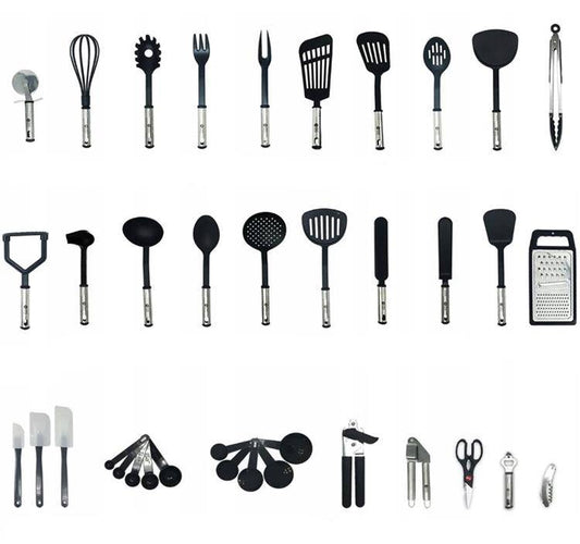 Kompletny Zestaw 40 Akcesoriów Kuchennych 40 sztuk czarno-srebrny