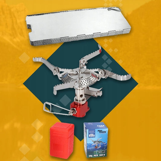 Kuchnia turystyczna osłona przeciwwiatrowa + 4 gaz.
