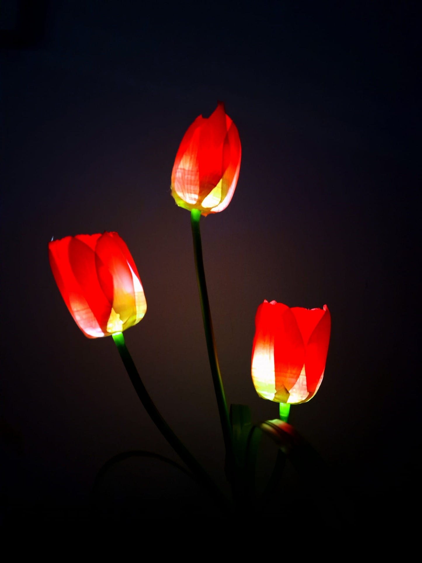 • Zestaw 2 sztuk: Dwie lampki w kształcie realistycznych tulipanów.