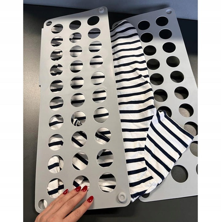 - Praktyczne Rozwiązanie: Składak do ubrań to praktyczne narzędzie, które ułatwia codzienne czynności związane z przechowywaniem garderoby. Dzięki niemu można szybko i łatwo złożyć ubrania, oszczędzając czas i zachowując porządek w szafie.