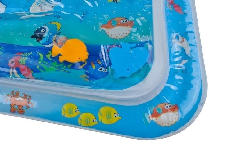 Opis Dmuchanej Maty Wodnej Edukacyjnej Sensorycznej: Nasza mata ma wielokolorowe komory wypełnione wodą i ciekawymi przedmiotami, takimi jak pływające rybki czy błyszczące konfetti. Dzieci mogą obserwować, dotykać i bawić się tymi elementami, co dostarcza im różnorodnych bodźców sensorycznych. Mata jest dmuchana, więc można ją łatwo napompować i umieścić na podłodze lub na ziemi, co pozwala na wygodną zabawę.
