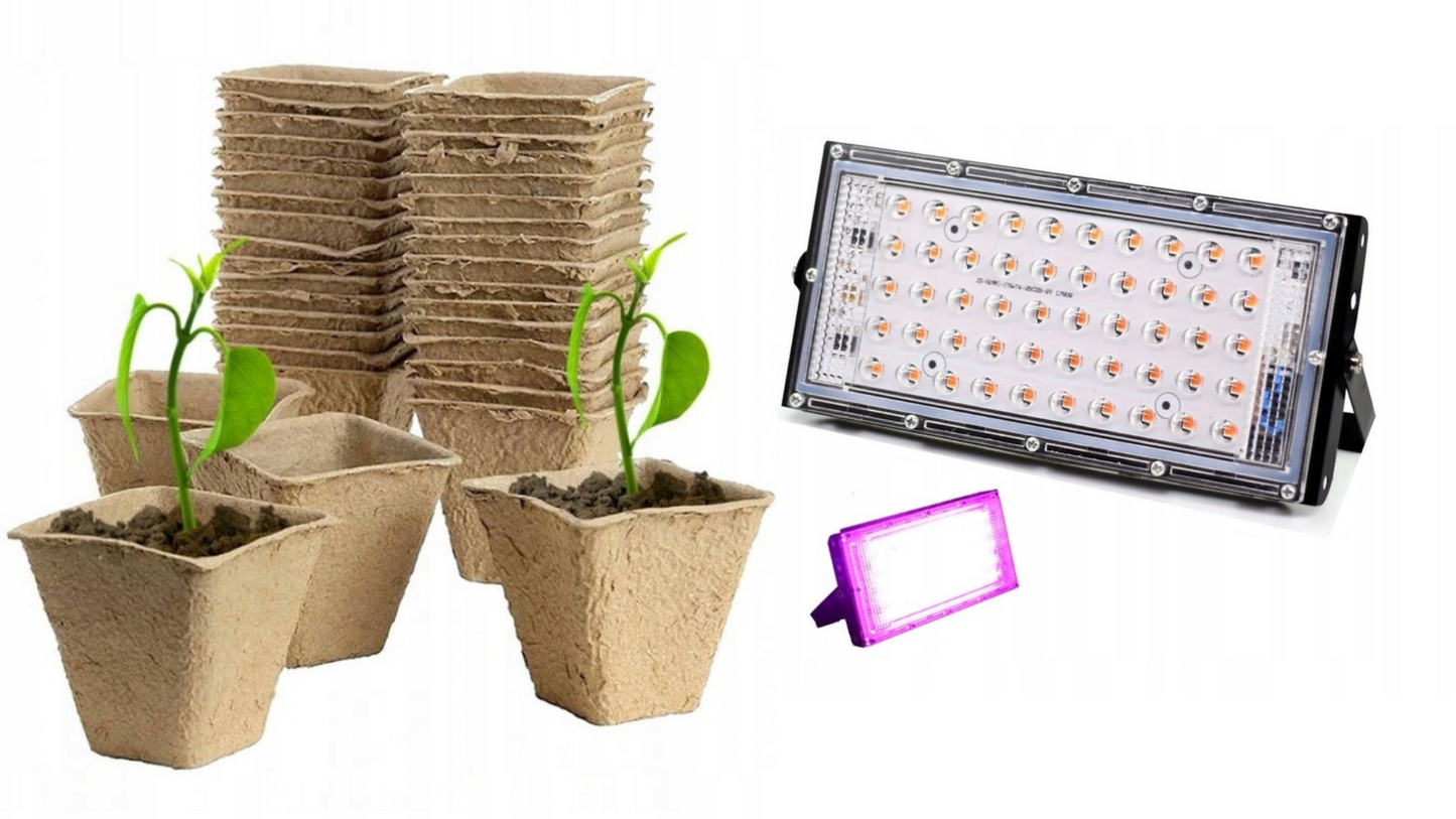 Doniczki Torfowe Biodegradowalne na Rozsadki i Sadzonki - Komplet 72 Sztuki 6x6x5 cm z Gratisową Lampą 50W
