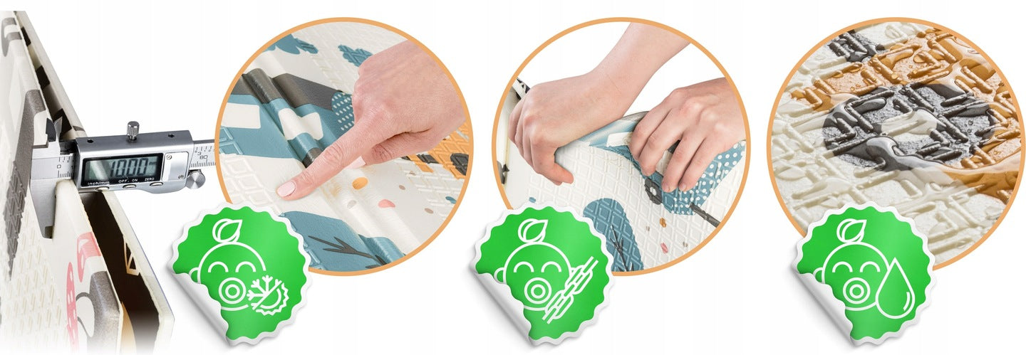 - Materiał XPE: Bezpieczna i trwała pianka XPE, która jest miękka, elastyczna i łatwa do czyszczenia.