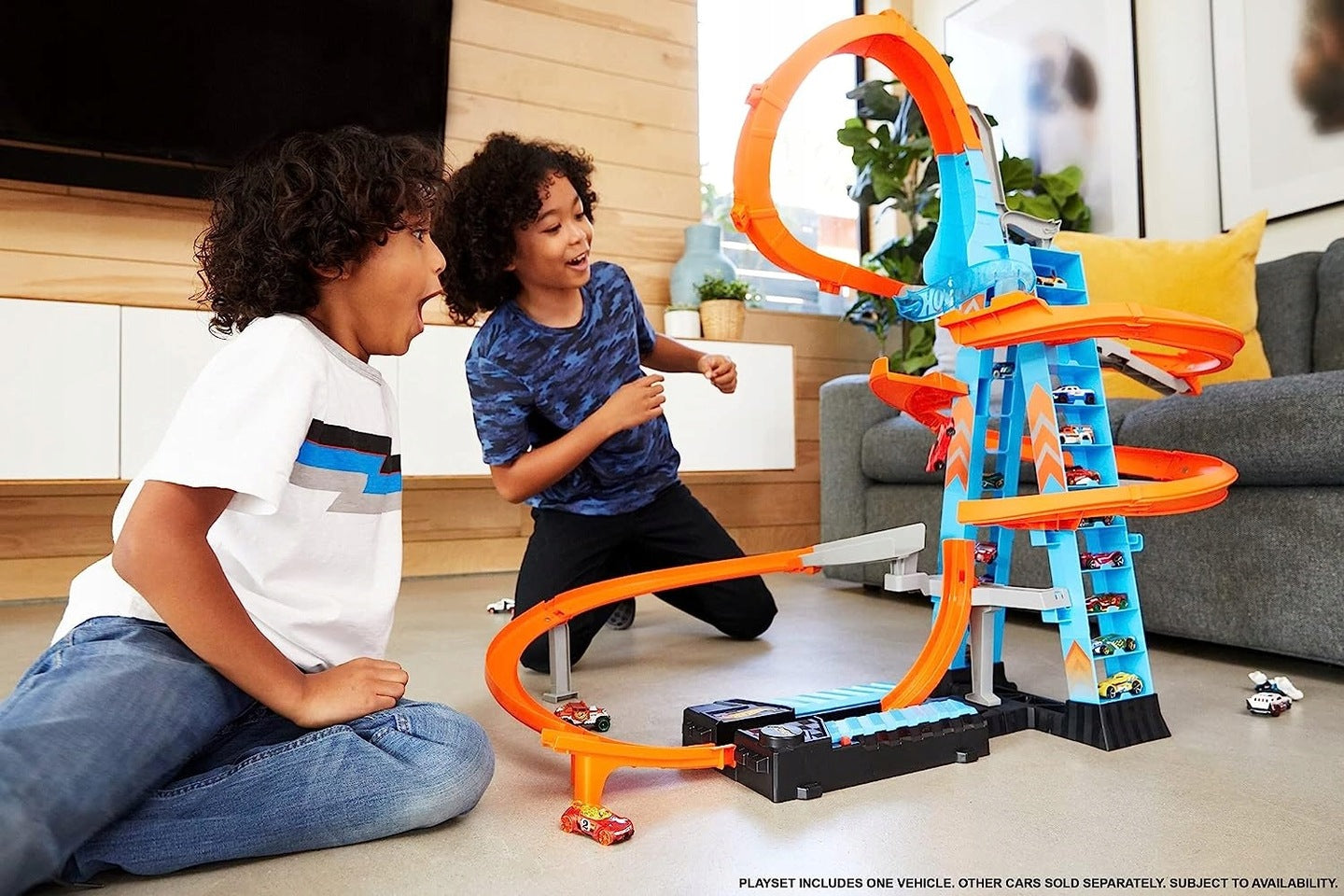 Wysoka Wieża: Nasz zestaw Hot Wheels Wieża Podniebna Kraksy zawiera imponującą wieżę, z której samochody Hot Wheels mogą rozpocząć szaloną jazdę.