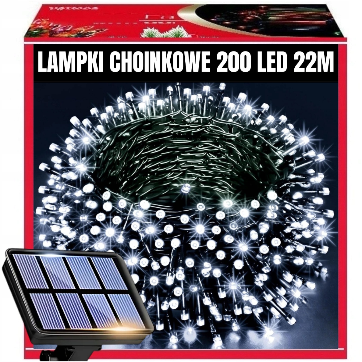 Lampki choinkowe solarne 200 LED, 22 m, świąteczne, zewnętrzne i wewnętrzne, białe.