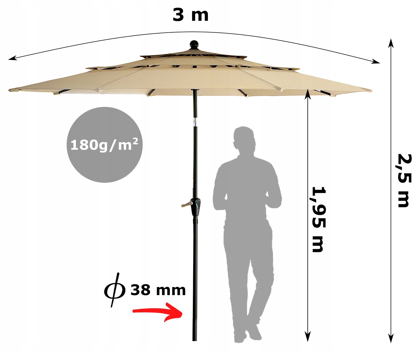 - Optymalna Powierzchnia Ochrony: Duże wymiary 300 cm x 250 cm zapewniają skuteczną ochronę przed słońcem.