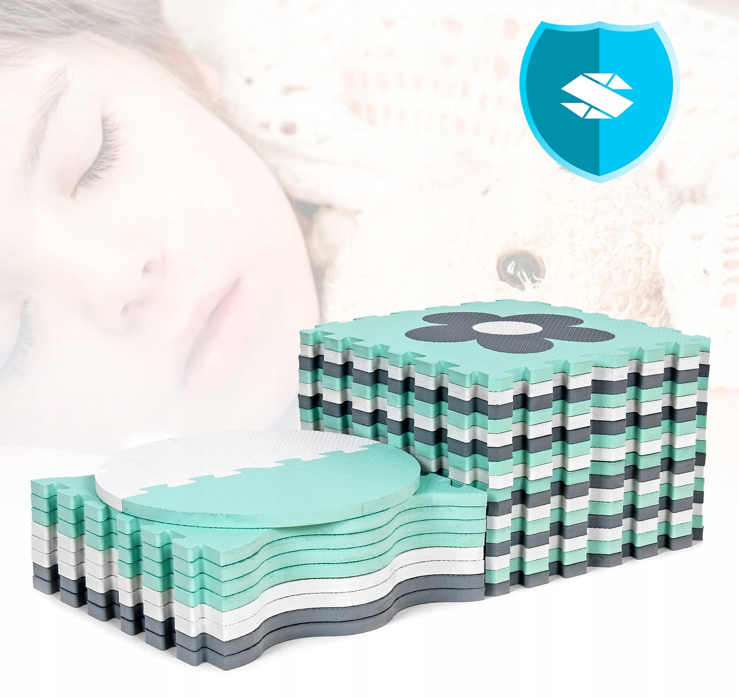 - Bezpieczna Przestrzeń: Grube elementy puzzli chronią przed upadkami i zabezpieczają dziecko podczas zabawy.