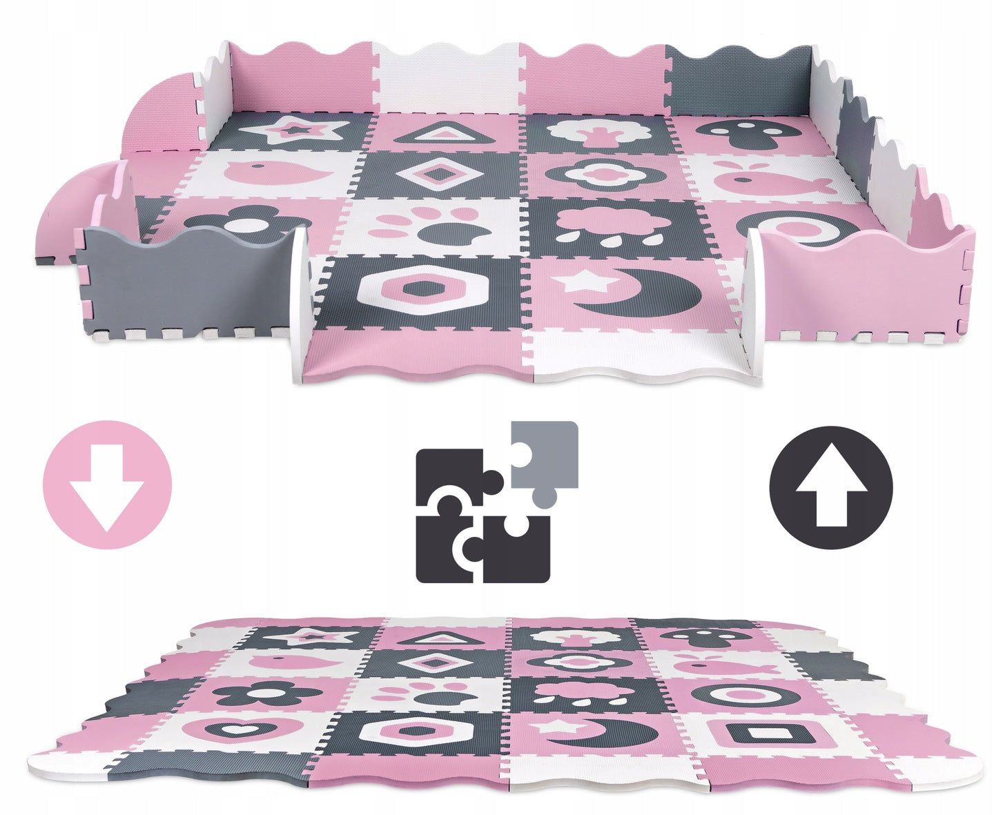 - Kojec dla Dzieci: Elementy puzzli można używać jako barierki w formie kojca dla dzieci.