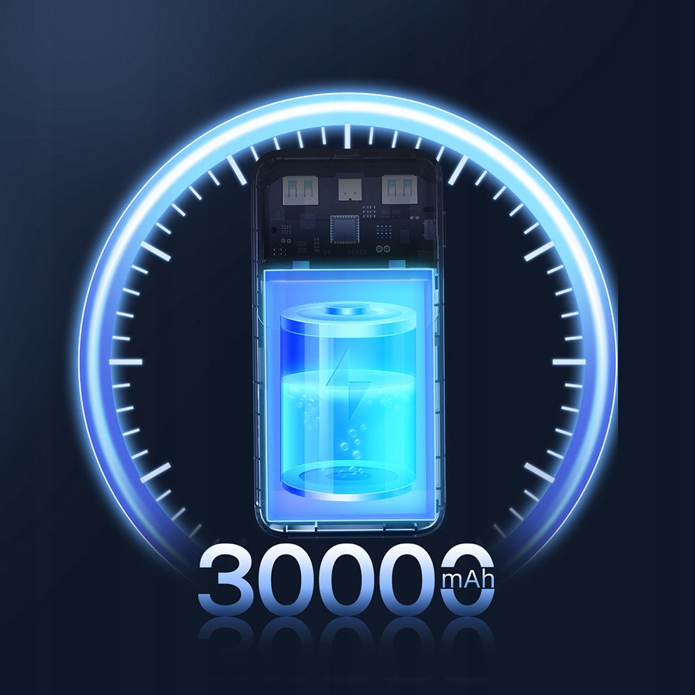 - Ogromna Pojemność 30000mAh: Zapewnia wielokrotne naładowanie urządzeń, co jest idealne dla osób, które dużo podróżują lub spędzają długi czas poza domem.