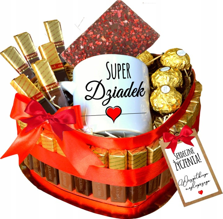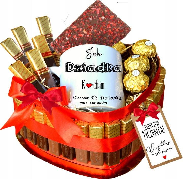 TORT MERCI - KOSZ PREZENTOWY Z ZESTAWEM SŁODYCZY - ROZKOSZ DLA DZIEŃ BABCI, DZIADKA, IMIENINY