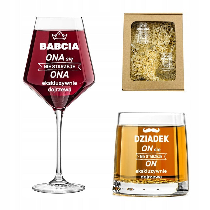 - Rodzaj: Zestaw Prezentowy Dla Dziadków - Kieliszek + Szklanka z Grawerem